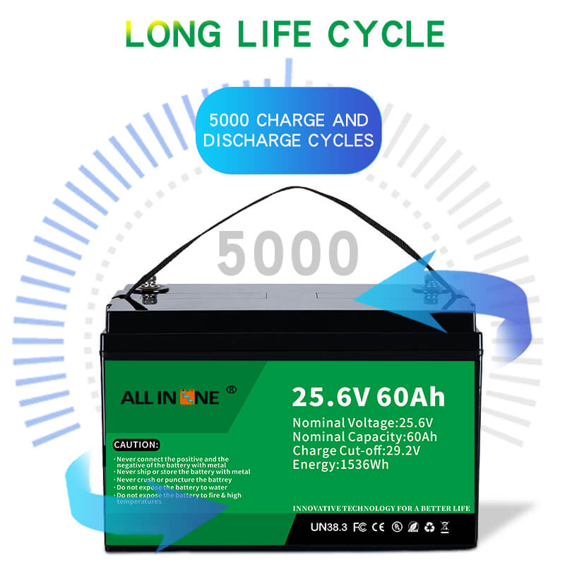 Tämä 25,6 V 60 Ah: n LFP -akku voi täydellisesti korvata AGM/GEL -akun. ALL IN ONE tarjoaa myös räätälöityjä akkuja, joilla on eri kapasiteetti, mitat ja toiminnot asiakkaan erityisvaatimusten mukaan. AGM/GEL-lyijyakkuihin verrattuna ALL IN ONE Li-ion (LiFePO4) -korvausratkaisuilla on seuraavat edut: